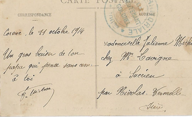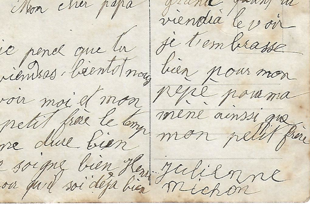 Julienne ne reverra hélas pas son papa, qui mourra au combat en aout 1918, à quelques mois de la fin de la guerre.