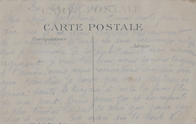 Une autre de ses missives à sa femme, datée de 1915