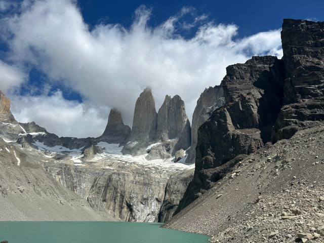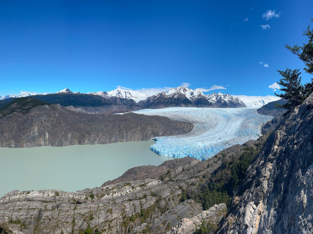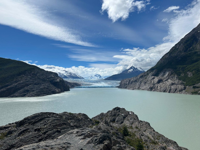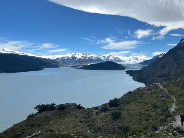 « Nous sommes partis très tôt ce matin en direction du parc Torres del Paine pour faire le « trek en W », extrêmement connu (et couru). Après 30 min de bateau (et un peu de chance, car il n’y avait plus de place en ligne pour le bateau mais le capitaine nous a laissé monté), la première étape nous a amené le long du lac Grey jusqu’au glacier du même nom qui plonge dans le lac. Après le précédent trek où nous avions seulement 2 autres duos en même temps que nous, la différence est marquante car le trek est extrêmement populaire, les bivouacs sont des campings avec douche chaude et internet (d’où ce message…) et peut-être une centaine de tentes à résidence toute la saison pour les randonneurs sans matériel ! Mais les paysages sont toujours aussi beaux, nous avons aussi eu l’occasion de voir deux magnifiques condors des Andes (malheureusement pas de photos).
