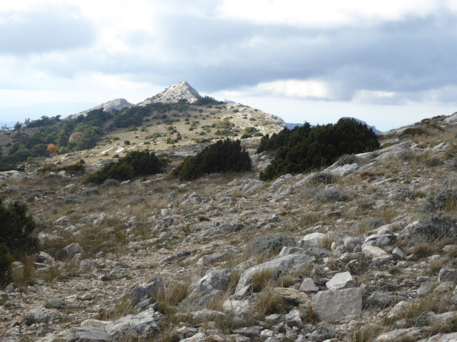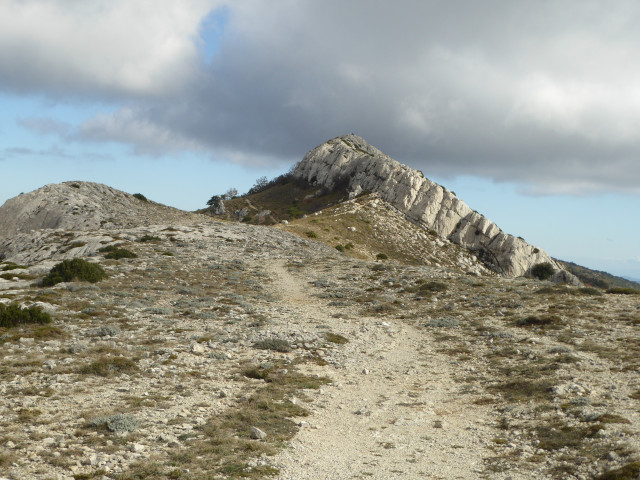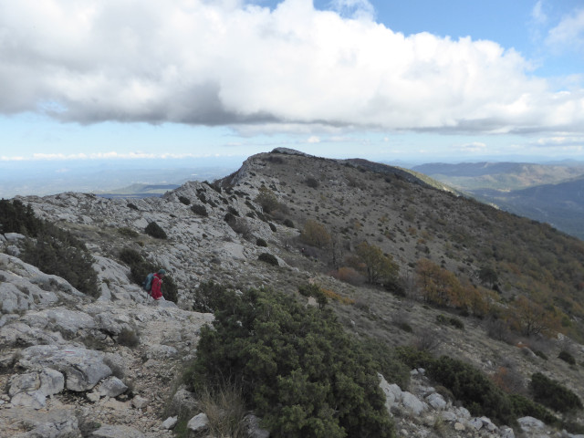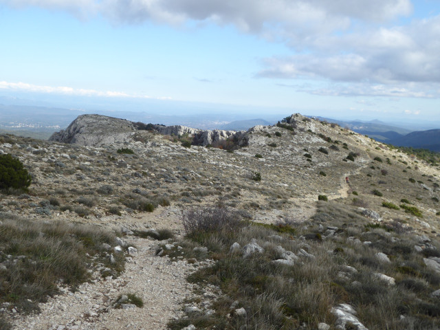La ligne de crête entame sa descente et le sentier devient un peu moins caillouteux.