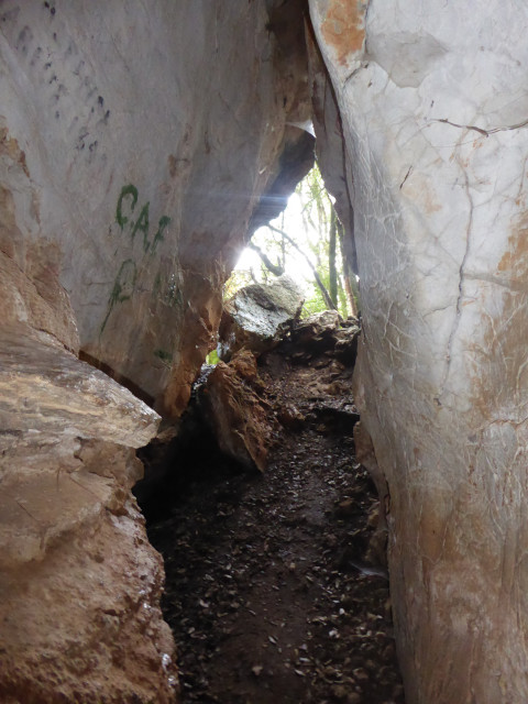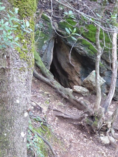 Nous remontons jusqu’à sa source, un simple trou dans les rochers.