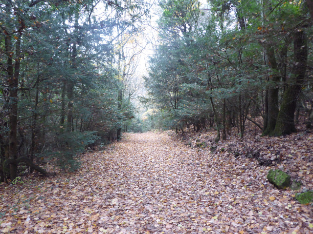 Ensuite, le sentier monte fortement, d’abord sur un beau tapis de feuilles mortes,