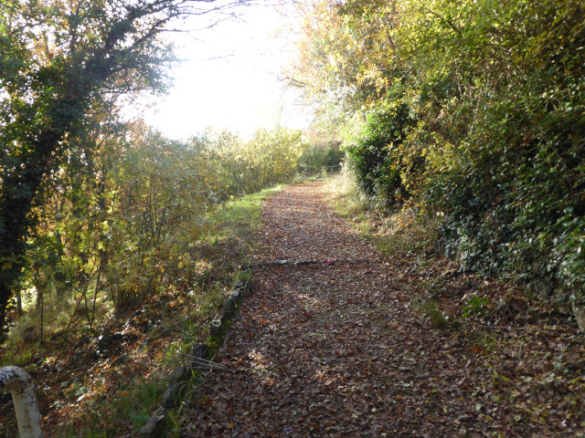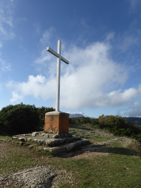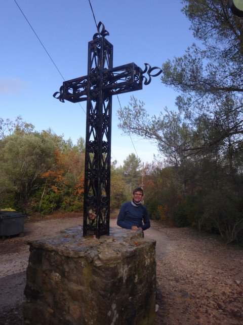 qui rattrape une petite route qui monte jusqu’à une croix.