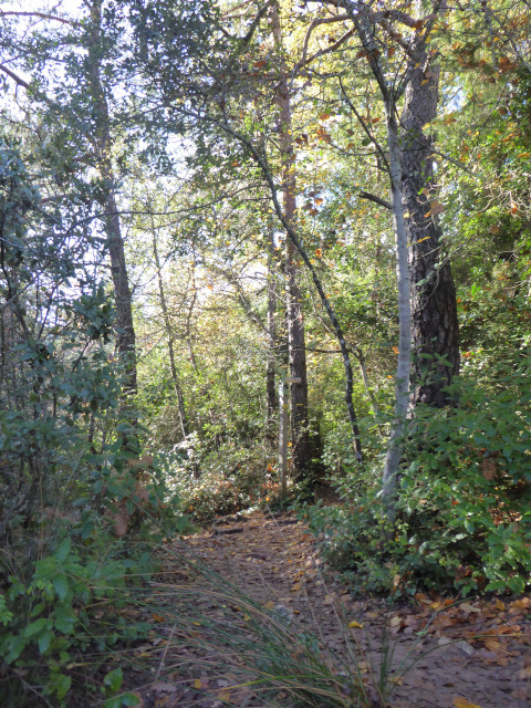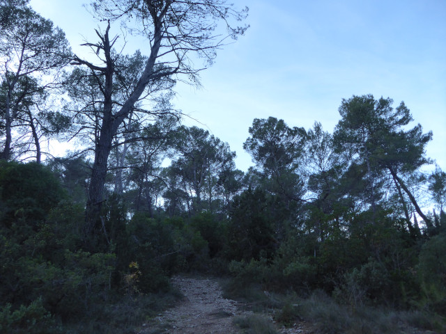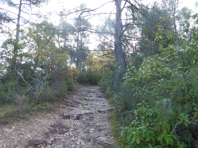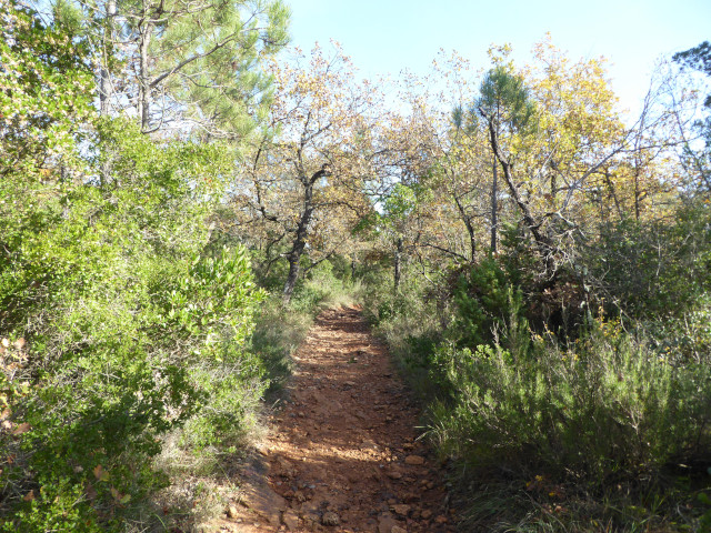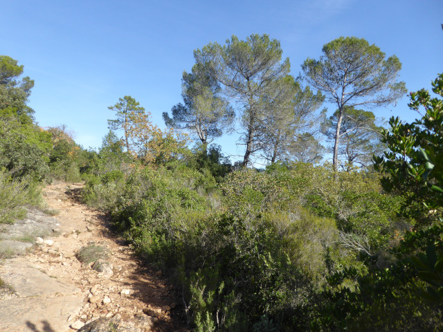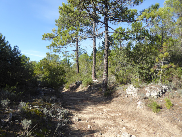 Arrivés aux premières maisons, nous remontons sur la gauche dans la pinède, pour retrouver notre chemin de montée et terminer la randonnée.